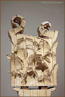 El aspecto central lo constituye una selección de treinta cerámicas que se caracterizan por su sofisticada rudeza, presentando formas laceradas, fragmentadas y agujereadas, en las que aparecen elementos figurativos que se refieren a plantas y seres acuáticos, sugiriendo lenguas, pétalos, aletas u hojas, y pudiendo tener, en ocasiones, rasgos antropomórficos.